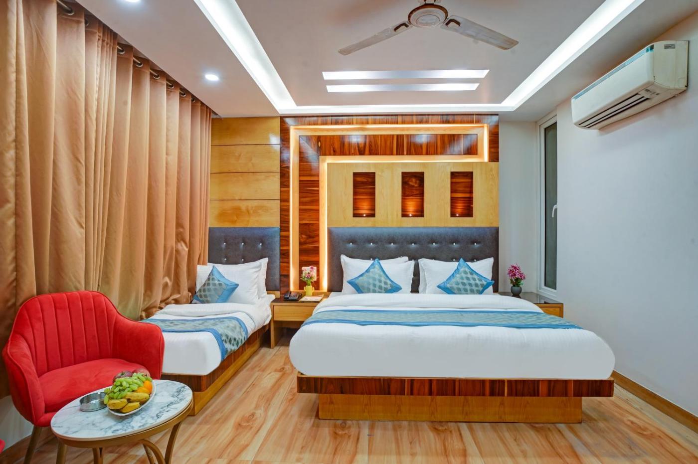 At the hotel the rooms come with air conditioning, a seating area, a flat-screen TV with satellite channels, a safety deposit box and a private bathroom with a shower, free toiletries and a hairdryer. Just Renovated - Hotel Krishna Palace With Parking & 2 Mins Walk from Metro features some units with city views, and every room is fitted with a balcony.guest rooms in the accommodation are fitted with slippers and a computer.